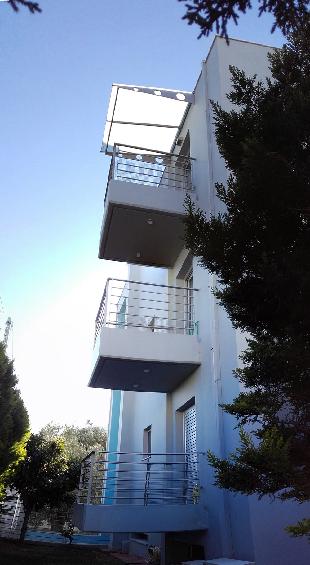 The structure is reinforced concrete the most frequent method of construction in Greece. The opaque elements of walls are built with hollow ceramic blocks and insulation, and the openings are double glazing with aluminum frames and shutters.