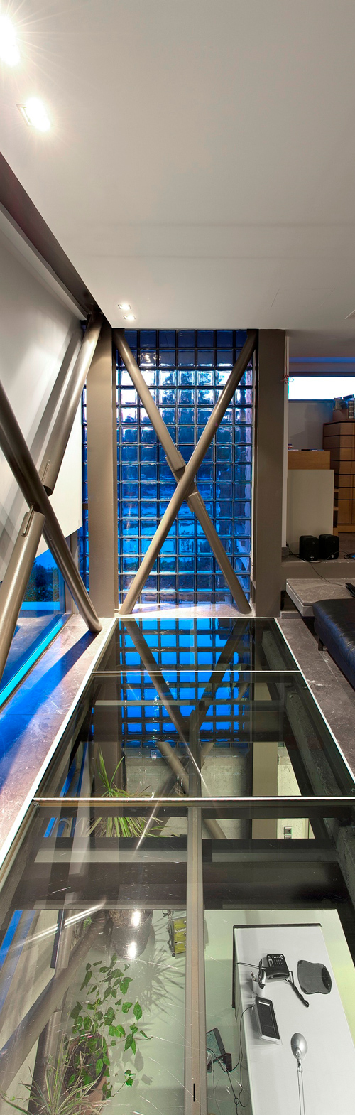 A urban residence situated in Thessaloniki’s northern suburbia, combining house and office spaces. The building features exposed steel frame complemented by partly prefabricated concrete panels and timber drywall. The articulation of spaces promotes continuity and flow between floors and volumes. The arrangement is straightforward; all main spaces are arranged along the east-west axis to benefit from south orientation while the staircase stretches along north – south axis. Key space is the ground floor covered south oriented patio into which all main spaces either overlook or directly communicate with.